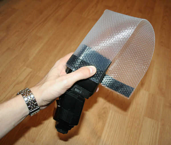 Base solución por arturg:-fue una revelación para mí, gracias :)Algunas fotos del difusor simple y muy barato para mi 580EXII. El material es escritorio de línea de IKEA - vendido en rollos de 5m para ~ 4 1$ (Polonia).Le he puesto velcro en difusor y