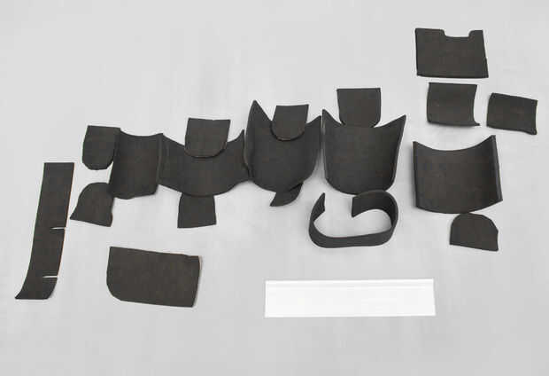 También necesita algún material amortiguador, como veis en la foto que he cortado cada forma para caber el compartimiento de la derecha.