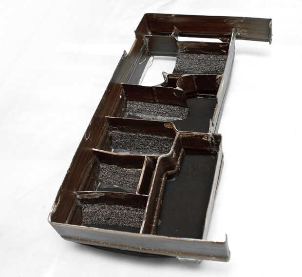 Los compartimientos de las lentes tienen en los bordes inferiores algunas piezas de espuma con sección triangular, para obtener un soporte redondeado.