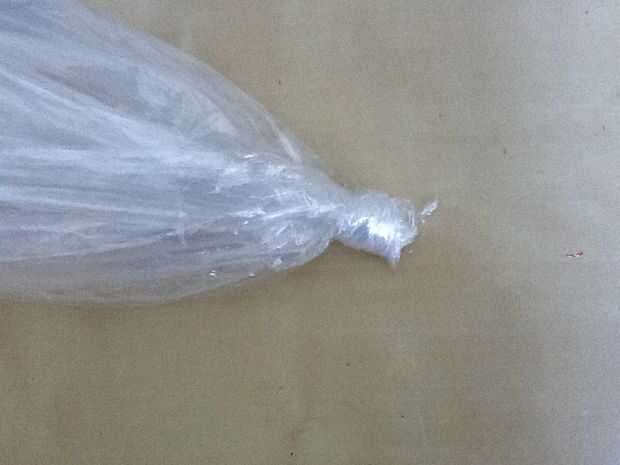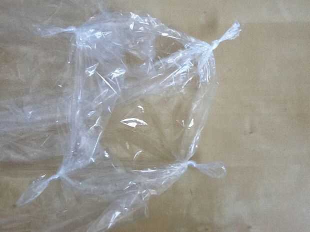 Luego del nudo de la bolsa donde está el agujero para los soportes de suspensión (sólo si tienes una bolsa de tintorería)