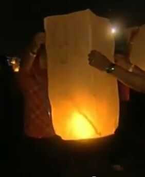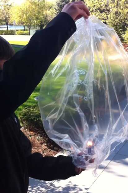 Después de eso, la luz de las velas en el fuego con el encendedor y esperar un tiempo hasta que la bolsa se llena con aire caliente.
