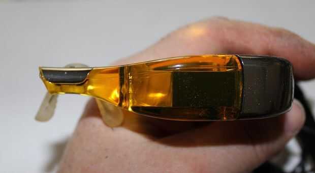 El plástico ámbar es realmente muy difícil así que ten cuidado de cortarlo. Tómelo lentamente.