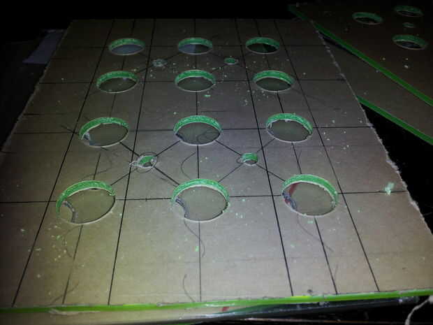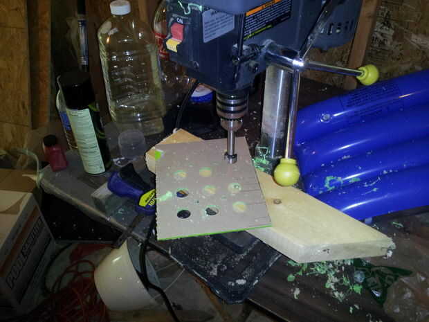 Ahora que sus pilotos se perforan, puede empezar a taladrar todo lo demás. En el paso anterior mencioné que pernos de 1/4". Comencé con estos. No hay razón para ello, pero que perforarlos primero en cada una de las tres hojas de plexi primero por lo que tuve que cambiar mi brocas constantemente. El siguiente es que el 5/8" cortes de los vasos de chupito. Estos son sencillos, pero que desea tomar su tiempo. Son grandes cortes y no desea romper el plexi. Dependiendo del material vas con así, que esto puede goma un poco encima de las brocas. En las muchas veces que lo he hecho, siempre tira fácilmente y nunca deja nada permanentemente, por lo que no hay que preocuparse si usted nota.
