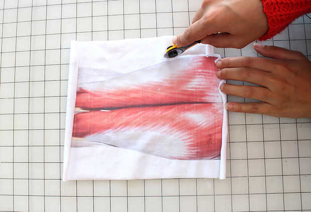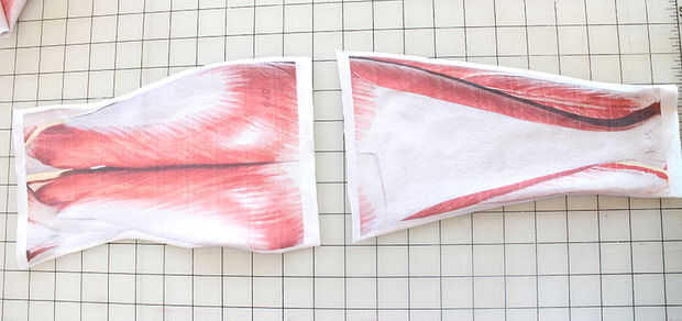 Usando un cortador rotatorio o tijera corte alrededor de las formas del músculo, dejando aproximadamente 1/8" todo. Si está utilizando una máquina overlock, este 1/8" será cortada. Si está utilizando una máquina de coser casera regular esto le da un poco más espacio para margen de costura.