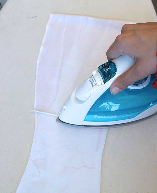 Coser los bordes fijados, asegurándose de que a coser dentro de la línea dura de la representación gráfica la costura es cosido y presionado, no hay blanco que muestra.