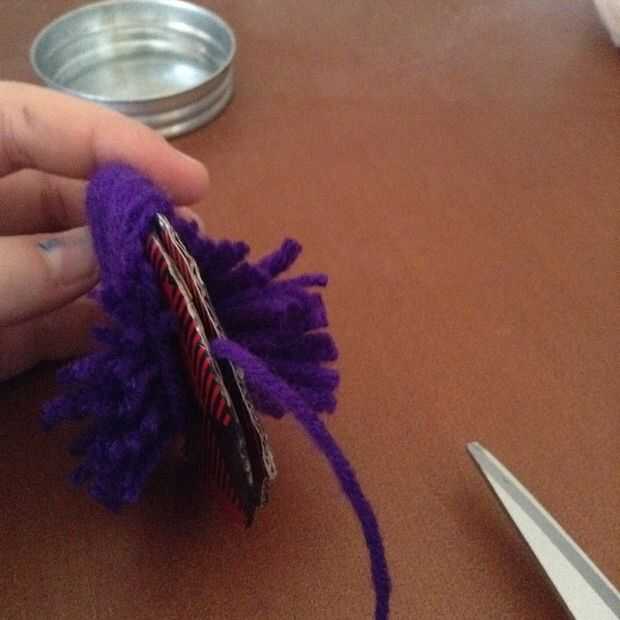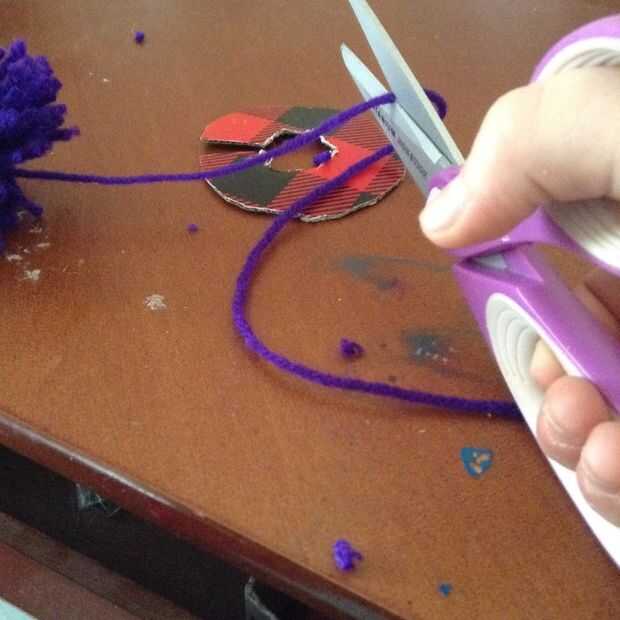 En general tienes que envolver el hilo alrededor de 200 veces, más envolver el suelto será. Al llegar al final tomar las tijeras, apriete entre los dos fabricantes para Pompónes y proceder al corte. Cortar el hilo que fueron de embalaje, ni se acaba con el. Inicio corte el hilo, como se muestra en la imagen #4.You también puede ver que estoy tomando el hilo que i dijo no y también apretando entre el cartón después de que he cortado. Seguir haciendo eso hasta llegar al final. Ahora divide las dos piezas de cartón aparte y tu deberías ver un pedazo de hilo que sobresale al igual que en el cuadro #5, puede ahora agarrar ese pedazo de hilo y atar no tan firmemente como sea posible. Tomar el pompón de los dos trozos de cartulina y un segundo nudo, pero asegúrese de que el primer nudo es tan estrecha como lo puede conseguir. Entonces tipo de lío con él para que se vea como un real POM-POM y cortar los desigual pequeños pedacitos de la cadena con sus tijeras. Luego cortar la hebra del hilo que todavía está conectado a tu madeja de hilo.