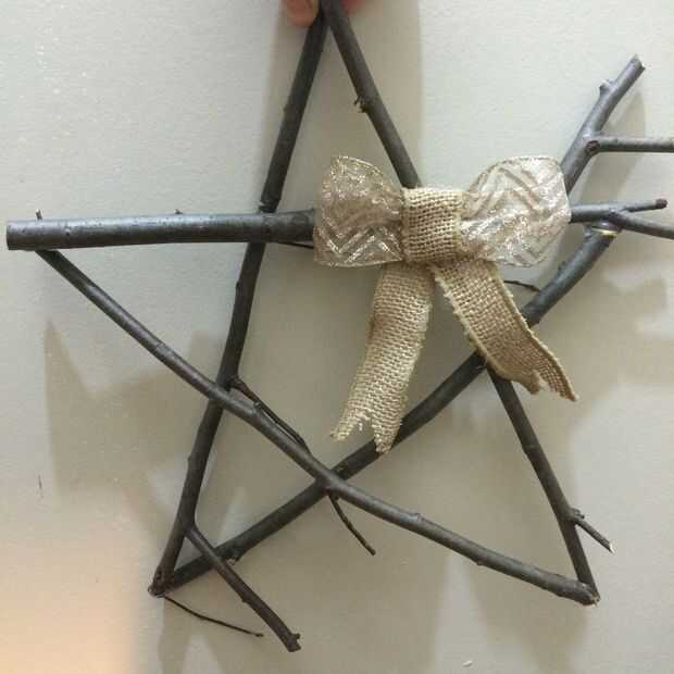 Usé las ramas sobrantes y hace mini estrellas. También era mucho más fácil de lo que acababa de usar una pistola de pegamento caliente en el lugar de apretándolos juntos.