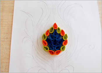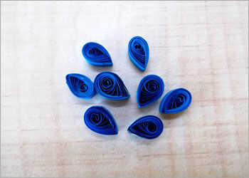 Hacer que las bobinas de gota en forma de lágrima en colores naranja y verdes también, alrededor de las bobinas de gota de lágrima azul en el centro.