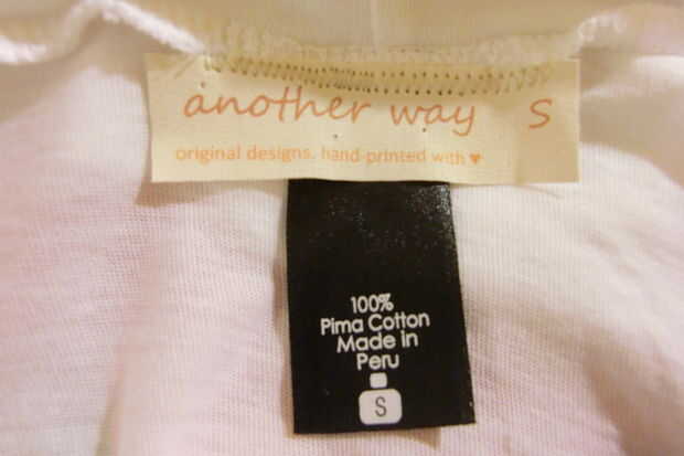 Reetiquetado: Después de serigrafía mi diseño en el artículo siguiente, etiquetar esta falda quitando la etiqueta de "Ropa alternativa" y sustituirla por mi. (Lo sé, no el trabajo de coser más bonito del mundo, estaba cansando!) Salí en la etiqueta del fabricante que incluye información de producto y tamaño.