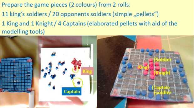 Aquí hice bolitas utiliza rollo de arcilla de la espuma que he cortado. Los deben ser menores que los casos sobre 7-8 mm de diámetro máximo. 13 defensores (incluidas las piezas especiales) y los 24 atacantes (incluidas las piezas especiales)