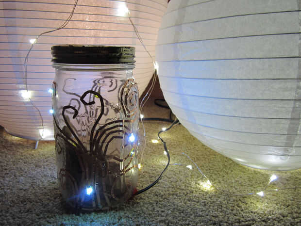 Usé un viejo tarro de masón para hacer un regalo de inauguración de la casa de mi amigo. Le encantó y era fácil y divertido que hacer!Paso 1: fuentes de Pinta tamaño tarro de masón, cartulina, cuchillo del exacto, corte mat, lápiz, lámpara de noche (