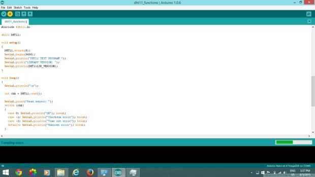 Usted puede conocer acerca de la DHT de humedad y temperatura. Lo bueno de ellos es que son muy baratos y muy fáciles de usar. Son fácilmente disponibles en el mercado como tiendas en línea también. Su es una amplia gama de DHT sensores como DHT11, DHT 21, DHT22, etc. Aquí estamos utilizando un sensor DHT11 sólo para medir la humedad como de temperatura se está midiendo por el LM35. Usted puede saltar el paso de conectar el LM35 y puede utilizar DHT11 sensor con un pequeño cambio en el código. Usted necesita descargar una biblioteca para hacer su charla de Arduino con el ordenador. El zip de la biblioteca se une con el paso. Descárgalo y descomprímelo en la carpeta de biblioteca de Arduino. Coloque el sensor en la caja antes de conectar y doblar sus puntas también. Conecte el sensor según las instrucciones indicadas a continuación (configuración de pines de la DHT11 sensor se da sobretodo en las imágenes). El código que indicamos a continuación para comprobar el sensor de carga: