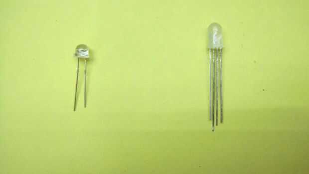 Su son básicamente dos tipos de LED utilizan aquí. Uno es solo color led de sombrero de paja blanco y el otro es un LED de RGB(Red,Green and Blue). Los sombrero de paja LED se utilizan aquí en lugar de LEDs redondeos normales porque son mejores que el que LEDs redondeos. Leds redondos tienen la tendencia de enfocar la luz en un área en particular. No dispersan luz tanto como sombrero de paja LED. Tienes que primero difunden los LEDs redondeos por frotamiento de lija para hacer la dispersión de la luz. En forma de cúpula led o paja sombrero llevado dispersa la luz, que las hace perfectas para las lámparas. Aunque sean pequeñas pero son muy brillantes. Su forma pequeña que se vean más hermosas que LEDs redondeos normales.