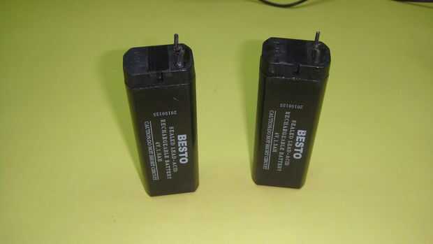 Elección de una batería perfecta, es el paso más importante. El amperaje de la batería le dirá por cuánto tiempo la lámpara emite luz no la tensión. Tensión es también importante. Elija una batería con voltaje entre 8V y 12V. La batería con voltaje entre esta gama es la batería más adecuada para esta lámpara como el regulador de voltaje de 5V de Arduino funciona perfectamente en esta gama. He utilizado dos 4V 1.5Ah baterías de plomo porque son muy baratos y no necesitan cargadores especiales. Sólo tiene que conectar la batería al adaptador y se cargará. He conectado 2 baterías en serie que me da 4V 1.5Ah de corriente. También puede utilizar las baterías de iones de litio sino aumentará el costo total de la lámpara.