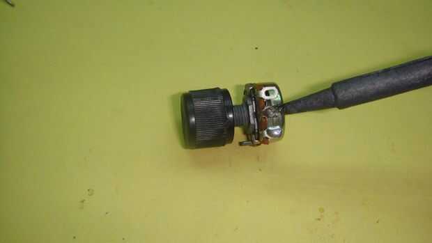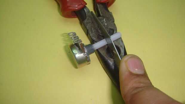 Usted debe tener dos preset de 10K o una maceta. Tome uno de ellos como nos sería utilizarlo para controlar la intensidad de la luz blanca cuando no estamos controlando la lámpara desde el móvil. No estoy seguro acerca de su pero mi bote tiene un palo muy largo rotatorio que se utiliza para controlar la resistencia. Un palo tan largo control seguramente hará su lámpara incómodo de utilizar por eso le sugiero que para cortar el exceso del palillo y luego coloque el nob en él. Asegúrese de que usted corte el palo paralelo a la base de otra manera que el mando será un poco inclinado.