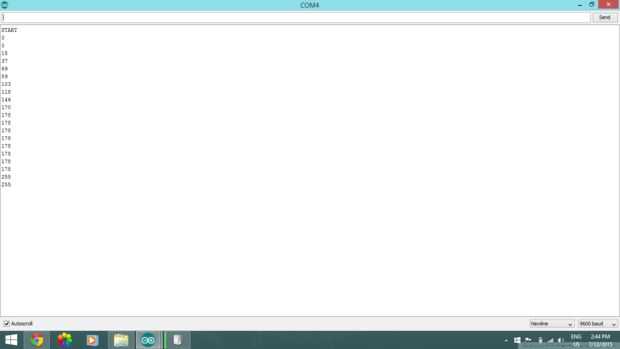 Es sentarse. Se realizan con el bote de conexión. Para comprobar tu olla, añadir el código siguiente y abra al monitor de la serie. Puede ver los valores entre 0 y 255 en el monitor serial