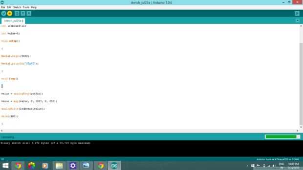 Conecte el positivo del tablero led al pin 11 de Arduino. Para comprobar el tablero llevado sube el siguiente código a su Arduino y control el tablero llevado usando la olla. Quienes quieren controlar el LED del pote sólo pueden terminar aquí e ir directamente a hacer la caja.
