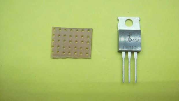 Ahora tome un pedazo pequeño de perfboard de descubierto. Soldadura TIP31c en esa pieza y conectarlo a tu Arduino usando el esquema dado anteriormente o como sigue: