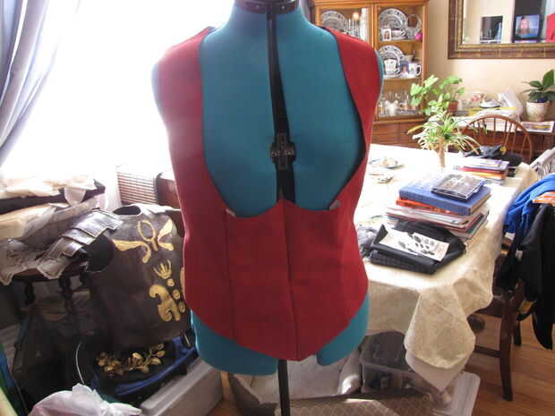 Usted debe terminar con una forma de chaleco terminado con la espalda abierta.