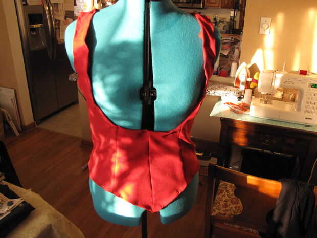 Entonces seguir adelante y terminar todos los bordes, plegándolas sobre 5/8 en, presionándolas y luego los costura hacia abajo. (Si son forro del chaleco, ahora sería el momento para hacerlo en lugar de sólo acabado todos esos bordes crudos.)