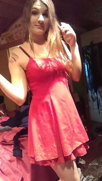 Literalmente nada al rojo vestido de otra que usar debajo de un negro que se verá alterado. Por suerte terminé sólo necesidad de cortar (sin coser). Pero que podrían diferir en base a los dos vestidos.