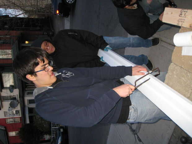 4. colocar el canalón de PVC sobre el armazón, marque la posición de poste de madera en relación con el canal.