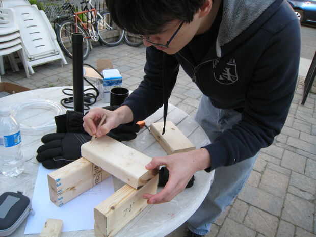 1. conseguir el marco de la derecha, mide 6" de la parte superior de la pieza vertical más larga (43,5" la pieza) y marque una línea.