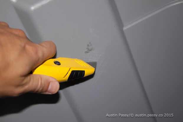 También usé un cuchillo raspar hasta el plástico para conseguir el pegamento caliente del epoxy/no tóxico no tóxico a los sujetadores de varillas. Si estás cómodo puedes atornillarlo, pero recuerda sellar el agujero con algo como agua