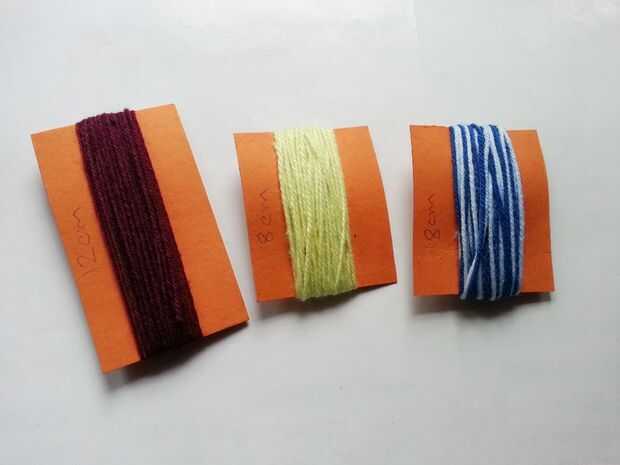 Tomar diferentes colores hilo y envuelva alrededor de los papeles de cartulina a lo largo. Mantenga envolviéndolos hasta que estén lo suficientemente gruesas (1cm de grosor en cada lado).