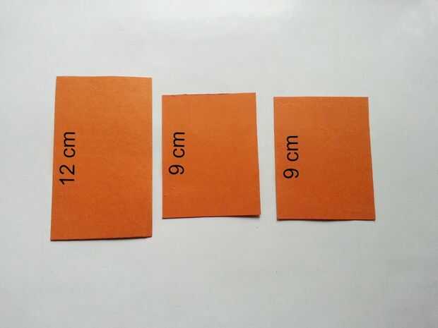 Usted necesitará cortar 3 trozos de papel de cartulina. El ancho de los papeles de cartulina debe ser alrededor de 4-5 cm. Dos papeles de cartulina deben ser de 9 cm y los otros 12 cm. La medida variará dependiendo del tamaño del pájaro.