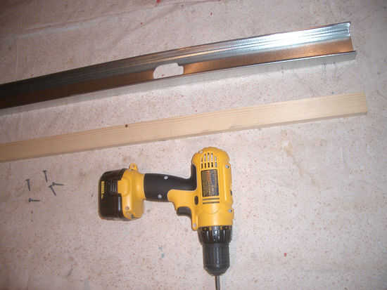 El primer paso en la construcción del marco fue pensando en el futuro cómo la hoja después estirada y asegurada. Fijación de la hoja para el trozo de acero se podía hacer, pero se necesitaría más esfuerzo que utilizando una pistola de grapas. Para facilitar las cosas os adjunto una tira de listón de 1'x 2" al lado de los postes de madera con panel de yeso tornillos de 1". Es mejor añadir estas madera tiras más temprano que tarde, por lo que se puede fijar como se construye el marco (de lo contrario puede flex la brida de metal se unen a y la hoja no permanece ajustada). También tienes que tener en cuenta el adicional 3/4" (x2) que esto es agregar a su ancho de viga. Usé esta medida adicional como un área de superposición para el guarnecido que bordean el marco más tarde. Si se va con una pantalla sin marco/untrimmed que quieres acortar las vigas para mantener su altura prevista total y anchura.