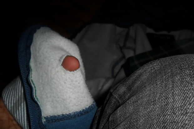 Poner en su campana y marca dónde están sus oídos. Después de esto ir y cortar esas marcas en La primera capa , no corte a través de la campana toda. Después de un orificio en la parte inferior de la campana. Corte un agujero en uno de los bolsillos para que puede alimentar a los auriculares a través de.