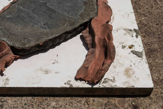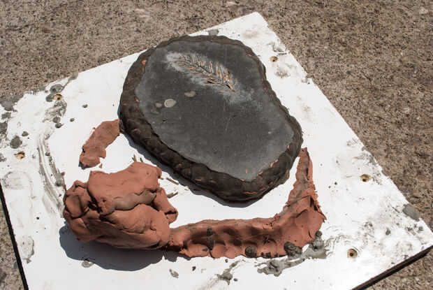 Levante las paredes de arcilla con los dedos y pelar lejos. La arcilla puede ser usado de nuevo, así que trate de quitar los trozos de concreto.