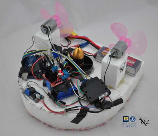 Este manual le enseñará cómo construir un DIY hovercraft de control remoto basados en Arduino que puede flotar en el suelo y se mueven en otra dirección. El aerodeslizador está construido principalmente de Junta de espuma polivinílica y consta de un ventilador canalizado, dos propulsores, un módulo de controlador de PS2® y una placa Arduino Uno. Puede utilizar un controlador PS2® para ejecutar el aerodeslizador en el suelo.