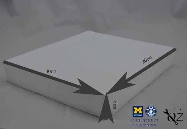 a. en una pieza de espuma con el tamaño de 30 cm * 30 cm * 5 cm (longitud * anchura * altura).