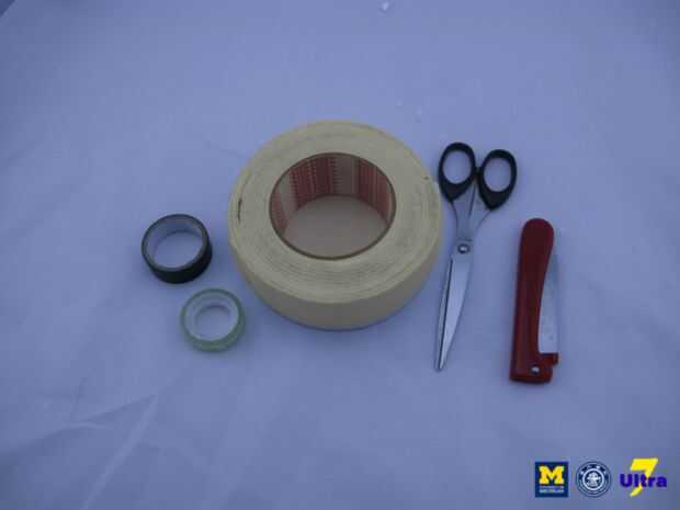 - Materiales: bloques de espuma, una espuma suave plástico piece(30cm*15cm*1cm), board(20cm*20cm*1cm) plástico una espuma dura, cinta ordinaria, cinta aislante, cinta de doble cara, un board(7cm*7cm*0.3cm) acrílico, tornillos y tuercas, cables