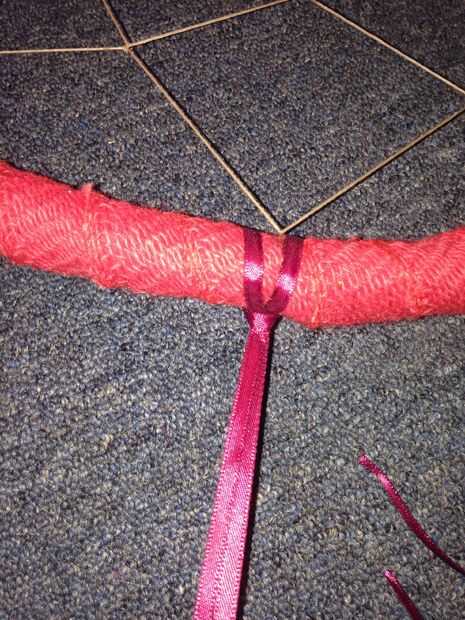 * Generalmente hago la borla de centro más larga y más elaborada. Un medio puede estar centrado con la presilla de colgar y el otro lado las borlas pueden tener la misma longitud y equidistantes desde el centro de una