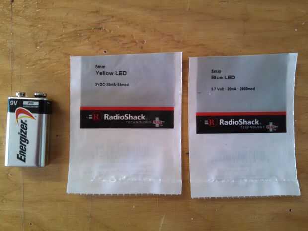 - Agarra el cable rojo (positivo) de la earstalk y fije el cable más corto (negativo) de un LED amarillo. Tomar el cable negro (negativo) de la earstalk y conecte con el cable más largo (positivo) en el otro LED amarillo.