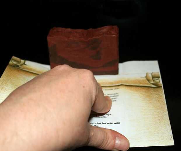 Ahora tome la barra de jabón y el lugar en el borde superior, luego doblar la parte inferior la mitad del papel hasta el jabón. Tendrás tu jabón ajustada en la bolsa que es la razón por que hacer este paso.