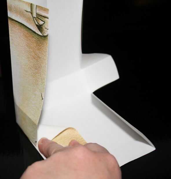 Tomar el pliegue que acaba de hacer y plegar para crear otro doblez que ve arriba y bajan su clavo para hacer un pliegue agudo.