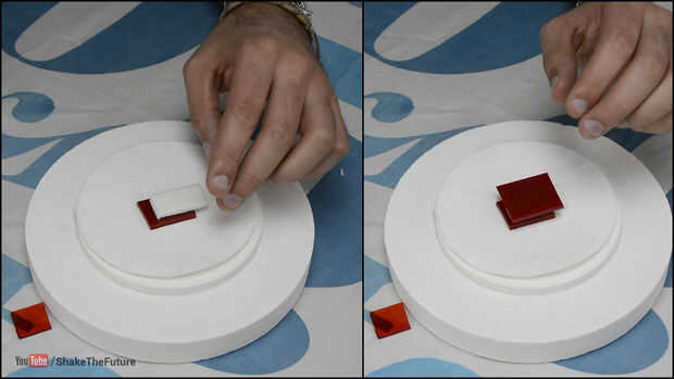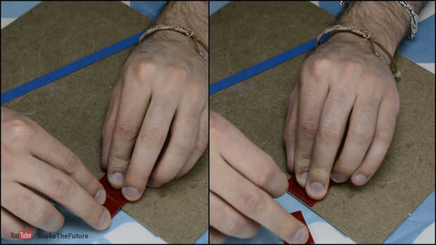 Pongo el trozo en la parte inferior y la pieza grande en la parte superior, dejando el rectángulo de la fibra en el medio.