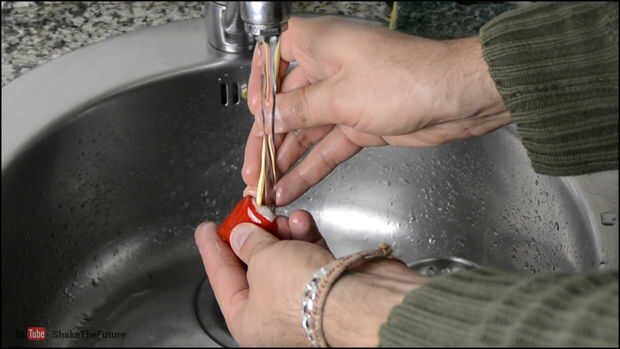 Utilizar una pequeña herramienta para raspar hacia fuera.