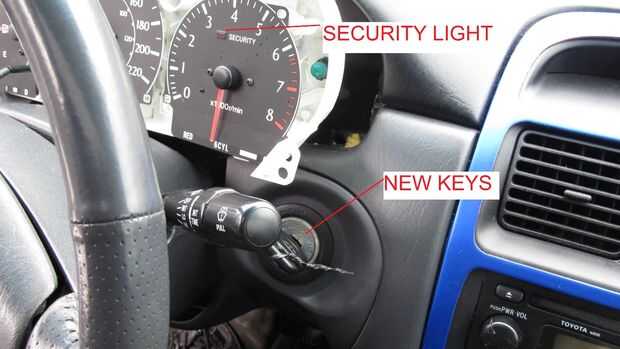 4. Inserte la tercera llave del transpondor en cilindro de la cerradura de ignición para el registro no se debe a su vez en. Después apaga la luz de seguridad Retire tercera llave de ignición. La luz de seguridad debe apagar y luego comenzará a parpadear regularmente.