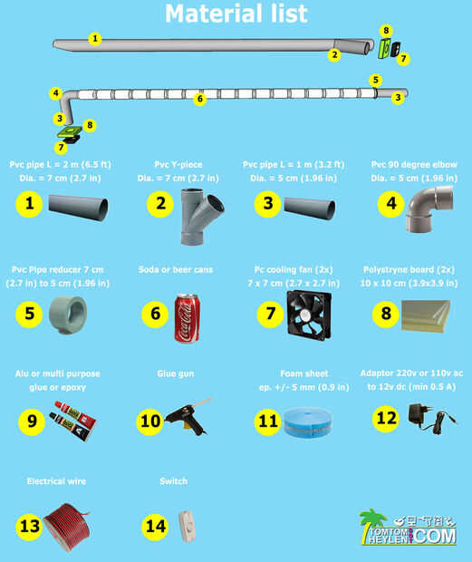 L = 2 m (6.5 pies) diámetro = 7 cm (2,7 pulgadas)