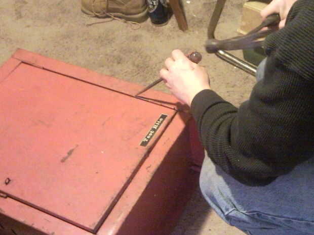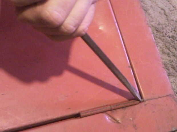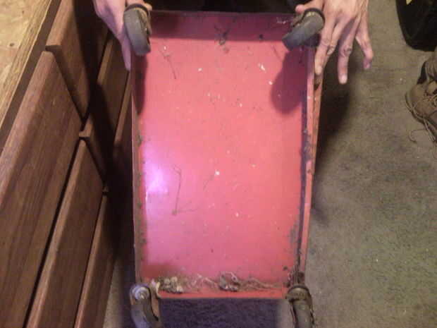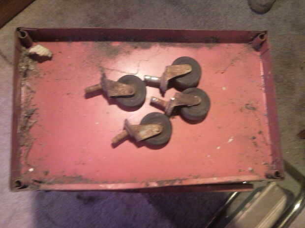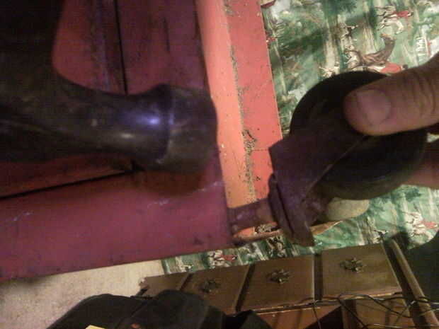 2. junto a venir apagado son las ruedas. Otra vez usamos el poderoso martillo para golpear ligeramente la rueda de guía hay agujeros. Mantener em para otros proyectos.