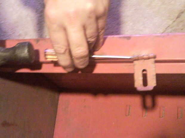 3. Sacuda la espiga hacia fuera con un pequeño punzón o destornillador para quitar la cerradura de candado.