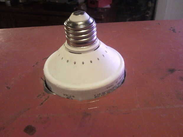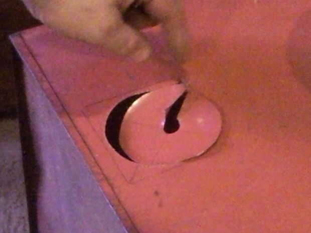 Flip el pecho en su lado (el lado que quieres ser top del Draft) encontrar el centro del área y la espalda para arriba de 3 pulgadas de desde la parte posterior del tórax hasta las la luz está descentrado por unas pocas pulgadas, marque X marcas el punto, utilizar la brújula para marcar el agujero para la luz.