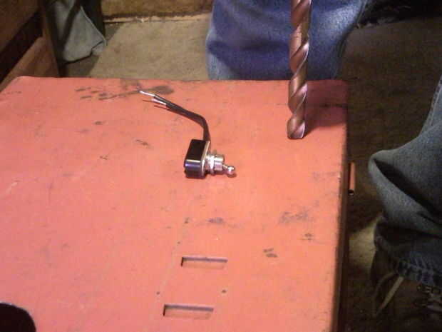 7. Mantenga el conmutador cerca de la esquina donde se conectará el poder. Perforar el tamaño del orificio apropiado para el conmutador.
