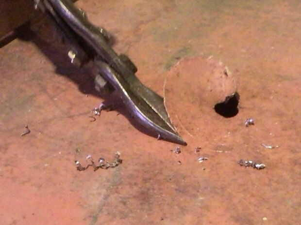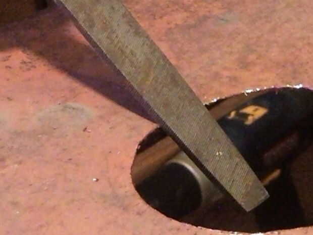 3. ahora el orificio está cortado a utilizar el archivo de Metal para limpiar las fresas.