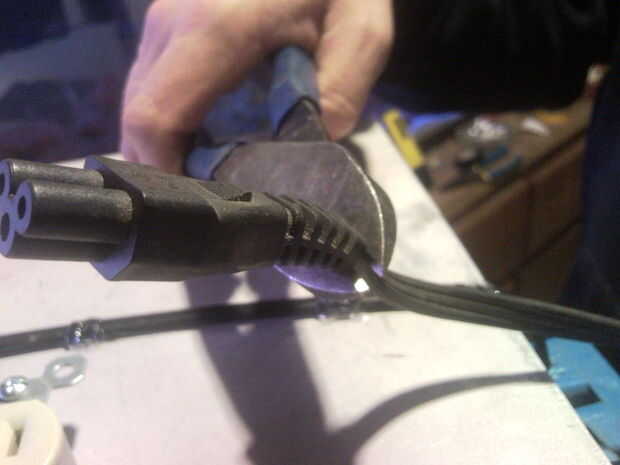 10. cinta la toma de alimentación con cinta aislante negra y está conectado.